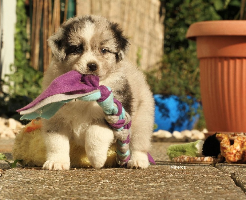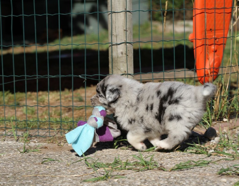 femelle bleue merle bicolore (sans feux) chienne avec un super caractère, aime tout le monde, adore prendre les tugs en bouche.